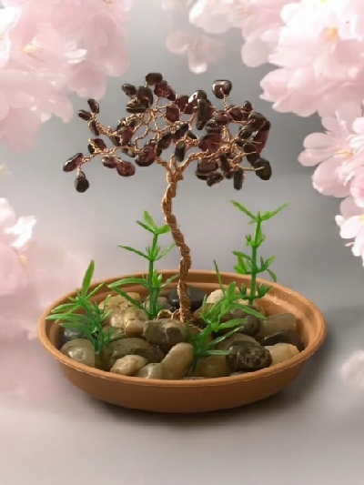 All flowers and trees are made using genuine gemstone beads or chips and wire.