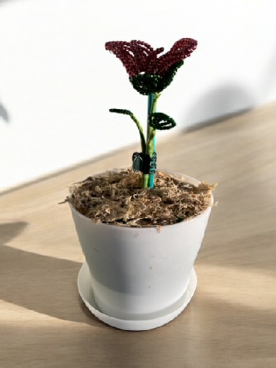 Rose is made with Garnet beads, and the leaves are made using green seed beads.