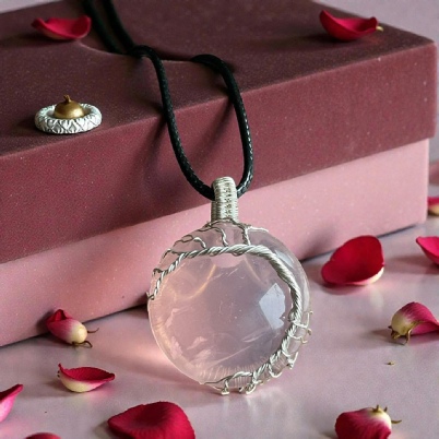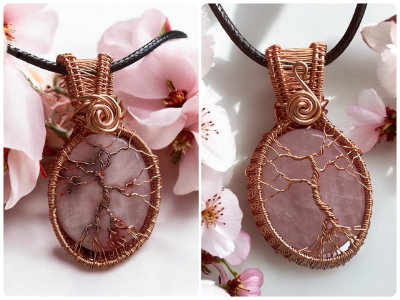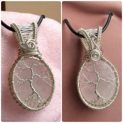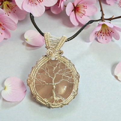 Rose Quartz Woven Frame Tree of Life Pendant