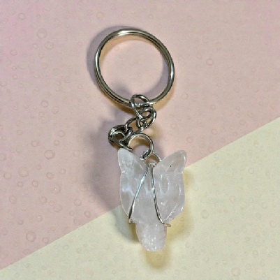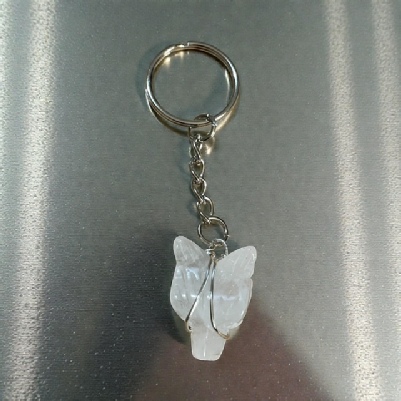 Clear Quartz Wolf Head Keyring