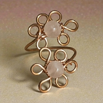 Rose Quartz Flower Adjustable Ring